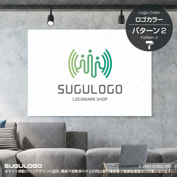 シンプルながらも印象に残る構成で、スタートアップ企業やIT・通信関連サービス、音声・メディア系ブランドなど、幅広い業種にご利用いただけます。