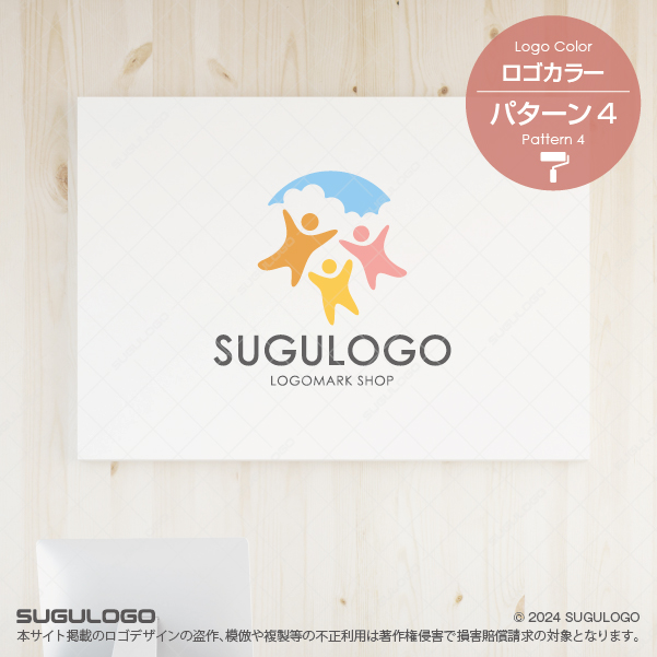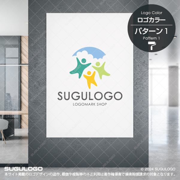 人と人が支え合い、安心してつながる「コミュニティ」と「保護・見守り」をテーマにした、親しみやすく温かみのあるロゴデザインです。カラフルな3人の人物アイコンと、それを包み込む青空と雲のモチーフが、安心・協力・成長・信頼を象徴しています。明るく前向きな印象を与えるデザインのため、利用者や保護者にも安心感を与え、幅広い世代に受け入れられやすいロゴです。
