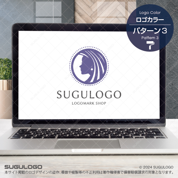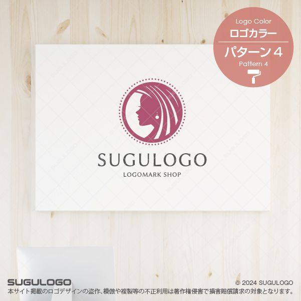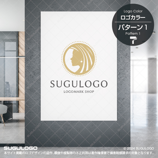 横顔の女性シルエットをモチーフにした、上品で洗練されたロゴデザインです。流れるような髪のラインと円形構成が、優雅さと調和を表現し、落ち着きのある中にも強さと美しさを感じさせます。ミニマルながらも華やかなデザインは、「美しさ」・「洗練さ」・「優雅さ」を表現でき、ハイエンドな美容サービスや、凛とした美しさを提供するブランドにふさわしいデザインです。高級感・上質・品格を演出できるため、美容サロン、エステ、コスメブランド、ジュエリー、女性向けサービスやラグジュアリーな事業に最適です。シンプルで視認性が高いため、ロゴマークはもちろん、名刺、Webサイト、SNS、パッケージなど、さまざまな媒体で美しく映えるデザインです。