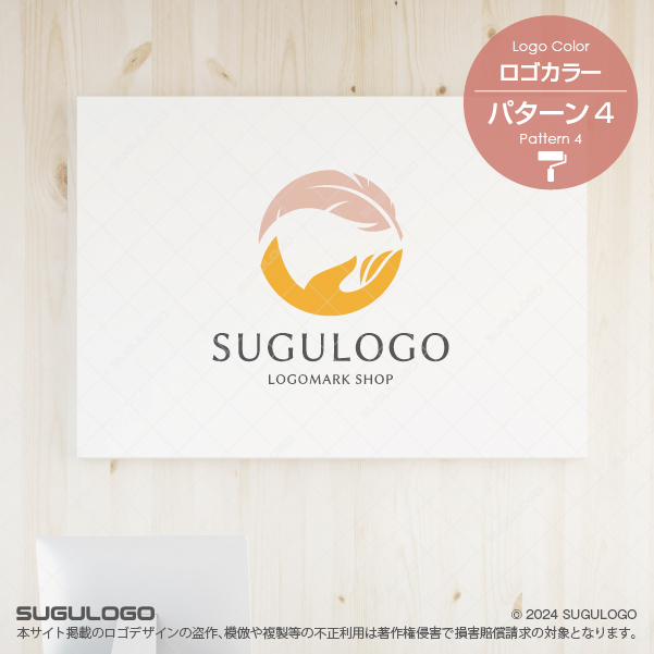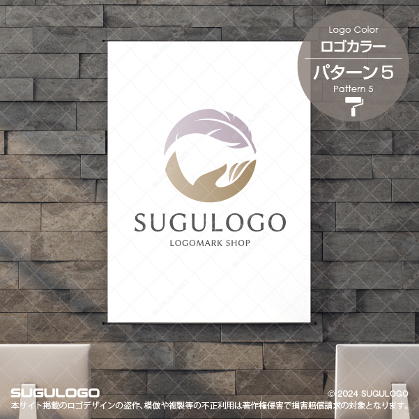 優しく包み込む手と、舞い上がる羽をモチーフにした円形ロゴデザインです。ケアと自由、守ることと羽ばたかせることの調和を表現した、温かみのあるシンボルです。そっと添えられた「手」と、ふわりと舞う「羽」を円形に構成しており、優しさと品格を感じさせるロゴデザインです。軽やかに広がる羽は「解放」「軽やかさ」「自由」を、包み込む手は「慈しみ」「サポート」「確かな技術」を象徴しています。心身の不調や重荷を取り除き、軽やかな未来へと導くイメージを表現しました。円形構成により、全体に調和と安定感が生まれ、見る人に信頼感と癒しの印象を与えます。医療・福祉・カウンセリング・ヒーリング・ウェルネス分野など、人に寄り添うサービスに最適なデザインです。
