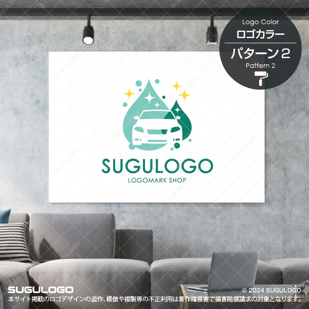 車と水滴と輝きの融合で清潔さを表現したカーケアビジネス向けのロゴデザインです。水滴は清潔感を、輝きは高品質でプロフェッショナルな仕上がりを印象づけます。水滴が高圧洗浄やカーケアの爽快感を視覚的に表現し、その中に浮かぶ車のシルエットがあなたのカービジネスの専門性を一目で伝えます。キラキラした星のアクセントでピカピカに磨き上げるイメージを演出し、丁寧で細やかなサービスを連想させます。お客様の大切な愛車を輝かせるプロフェッショナルな印象を与えるロゴのため、カーウォッシュ・洗車専門店、自動車コーティング業、カーディテイリングサービス、移動式洗車サービス、ガソリンスタンド、自動車メンテナンスショップ等の業種に最適です。