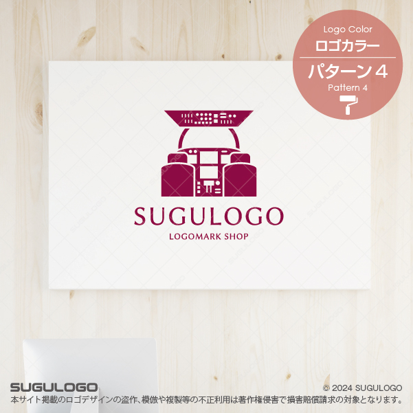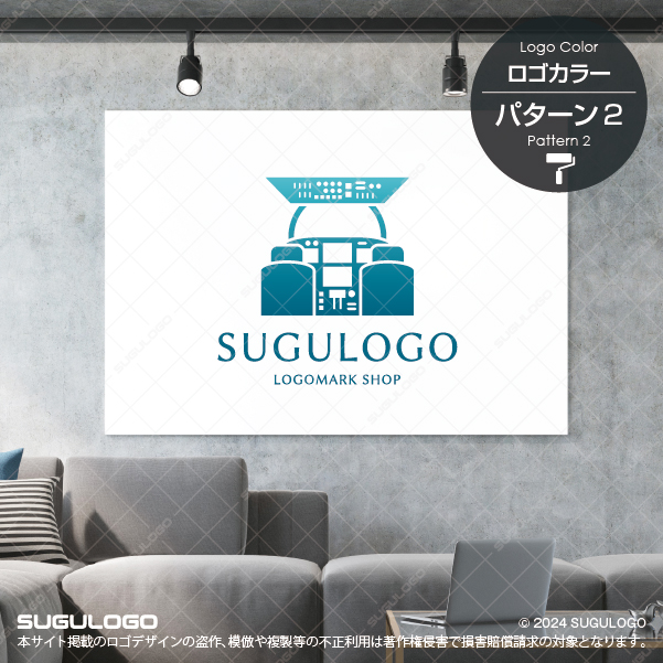 コックピット(操縦席)を描いた航空系ロゴデザインです。飛行機の心臓部である操縦席を描いた知性を感じさせるデザインです。コックピットは「高度な判断力」「統制」「責任」を象徴するため知的イメージを与えます。単なる乗り物のイラストではなく、ビジネスをコントロールし目的地へ確実に導く司令塔としてのイメージを凝縮しました。物事の核心をコントロールするイメージからコンサルティングや高度な技術職のシンボルとしても最適です。飛行機のコックピットをモチーフに、精密性・安全性・高度なテクノロジーを表現しています。計器や操作パネルを想起させる構成は「正確」「冷静」「プロフェッショナル」等の印象を与え、信頼が最も重要な分野に強くマッチします。