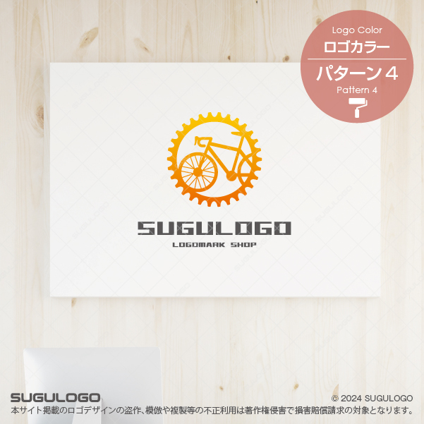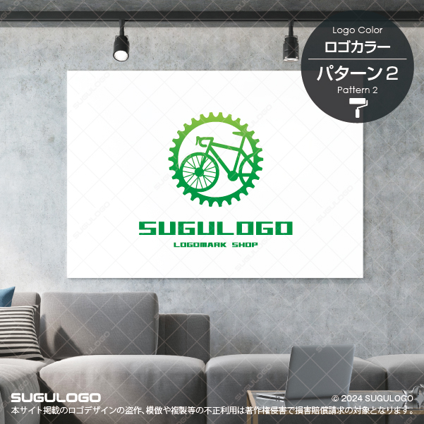 自転車とギア(歯車)を組み合わせた、アクティブで信頼感のあるロゴデザインです。一目で「自転車」「サイクリング」「メンテナンス」を想起させるシルエットで、自転車の躍動感とメカニカルな精密さを表現しています。ロードバイクを囲むように配置された大きなギア(歯車)で、力強い推進力とビジネスが円滑に回る様子を表現しています。モダンで洗練されたデザインは、プロフェショナルな印象を与えながら親近感も兼ね備えているため、自転車ショップ、ロードバイク・マウンテンバイク専門店、自転車修理・メンテナンス、リペアショップ、カスタムショップ等の自転車関連事業をはじめ、スポーツ、アウトドアサイクリングイベントなどに適しています。