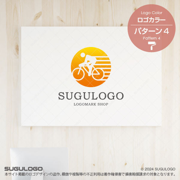 自転車に乗る人物(サイクリスト)のシルエットをモチーフに、スピード感と躍動感を表現した円形ロゴデザインです。前進する姿を象徴的に描くことで、挑戦・成長・アクティブなイメージを伝えます。円の中にスピードラインを組み込むことで、風を切って進む躍動感とプロフェッショナルな安定感を表現しました。サイクリングやスポーツバイク関連ビジネス、ロードバイク専門店・サイクルショップ、サイクリングイベント・レース企画、自転車関連事業をはじめ、スポーツ・フィットネス・アウトドア・イベント・コミュニティ、健康・ライフスタイル事業など、活動的で前向きな企業、スポーツ・アクティブ系の事業に最適なロゴデザインです。