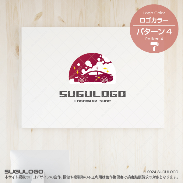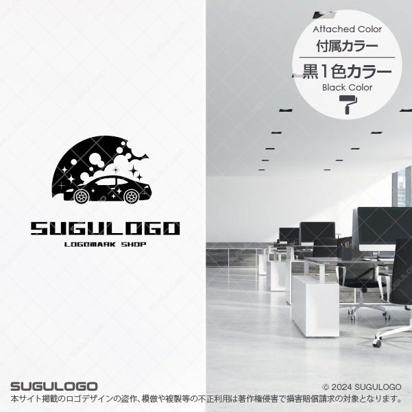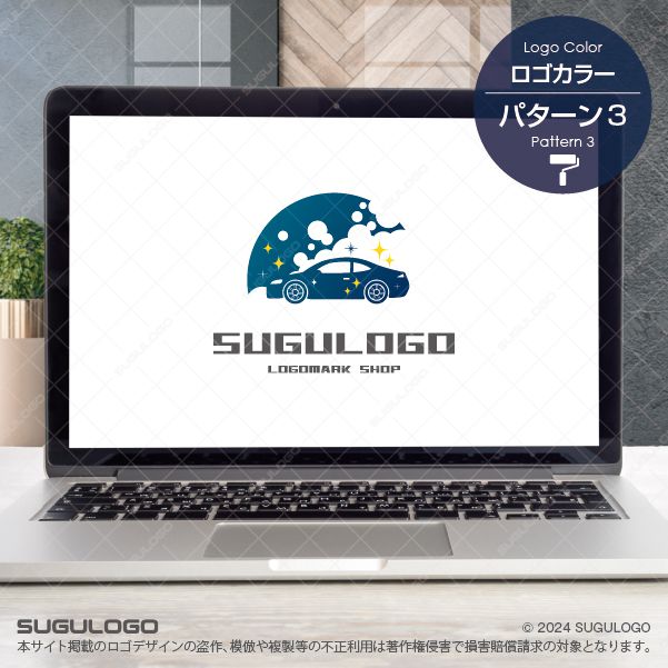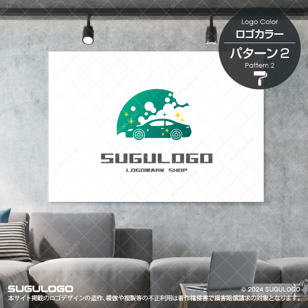 車のシルエットと泡・輝きのモチーフを組み合わせた、清潔感と丁寧さを感じさせるロゴデザインです。車を大切に扱う姿勢や高品質なサービスを視覚的に表現しています。洗車・カークリーニング・カーコーティングなどの自動車関連サービスをはじめ、自動車メンテナンス・出張サービス・法人向け車両管理など、「きれいに保つ」「価値を高める」ことを重視する事業に適しています。「洗車によって車が本来の美しさを取り戻す瞬間をシンボリックに表現しました。豊かな泡に包まれ、隅々まで磨き上げられた輝きを放つデザインは丁寧な手仕事と高品質なサービスを象徴しています。一目で「車を綺麗にするプロフェッショナル」であることが伝わる訴求力の高いロゴです。