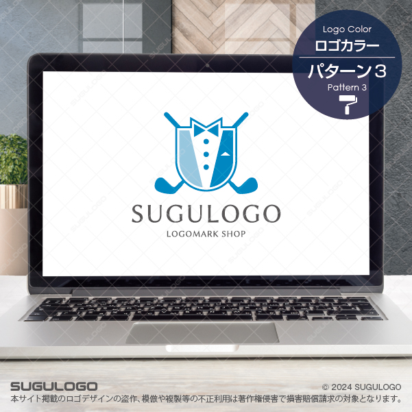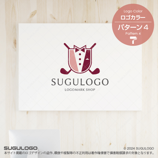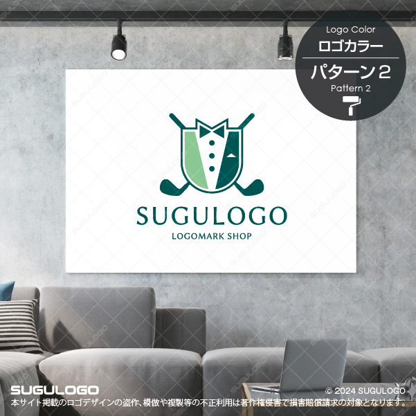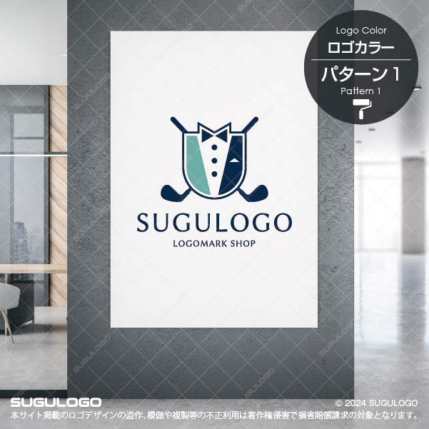 フォーマルさと遊び心をバランスよく取り入れたロゴデザインです。盾形のエンブレムに、タキシードを組み合わせ、上品さ・信頼感・個性を表現しています。フォーマルなボウタイスタイルとゴルフギアを組み合わせたウィットに富んだデザインで「ゴルフを単なる競技ではなく、洗練されたライフスタイルとして楽しむ」というメッセージを視覚化しました。ファッション×スポーツを感じさせるため、ゴルフアパレル、スポーツブランド、クラブチーム、ショップロゴ、セレクトショップ、ライフスタイルメディアなど、ファッション性と独自性を重視するブランドに最適です。一度見たら忘れない印象的なシルエットは、刺繍やタグなどのプロダクト展開でも強い存在感を放ちます。