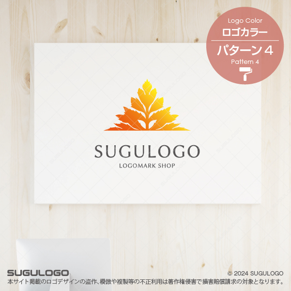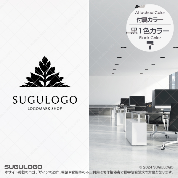 植物の力強い成長と秩序ある調和をテーマにしたリーフモチーフのロゴマークです。左右対称(シンメトリー)の美しさと、上方に向かって伸びる三角形の構図が生命力を感じさせるデザインです。自然・成長・調和といったイメージを伝え、ブランドの世界観を上品に表現します。ナチュラル系、ライフスタイル系、ウェルネス、オーガニック、農業法人、造園業、環境エネルギー関連、教育・スクール、コンサルティング、不動産、士業、医療機関など「信頼感」「成長」「安心感」を大切にするブランドにおすすめです。中心の軸から左右に等しく広がるデザインは、お客様との対等なパートナーシップや揺るぎない経営基盤を意味しています。