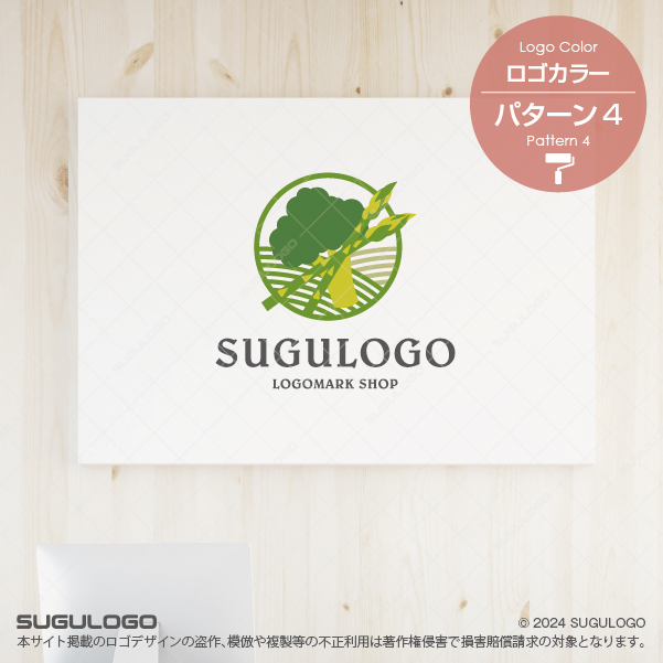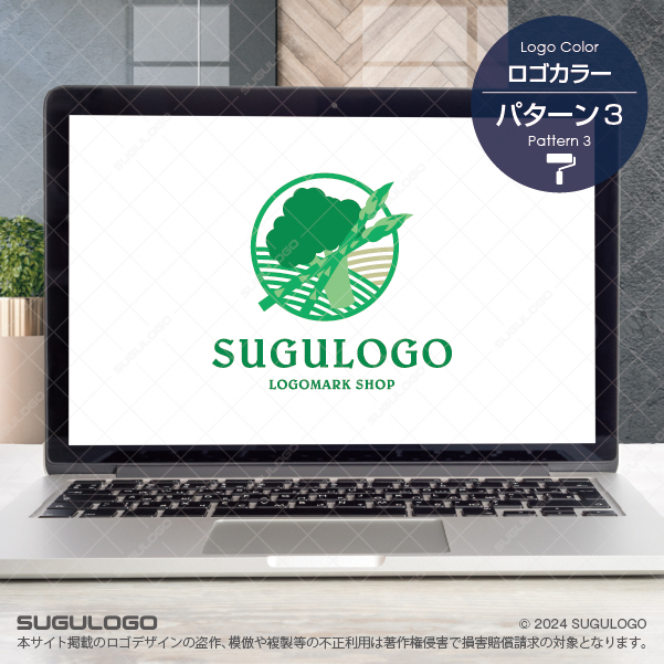 豊かな畑と瑞々しい野菜をモチーフにした、生命力あふれるロゴデザインです。自然の力強さと成長、丹精込めて育てた作物の品質、生産者の誠実な姿勢などを伝えられ、一目で「新鮮さ」と「安心感」を印象づけることができます。農業・食品・オーガニック関連、環境・エコ事業、教育、地域ブランド、自然志向のサービスなどに適しています。シンボル単体でも存在感があり、パッケージ、ラベル、Webサイト、SNSアイコン、看板、販促物など幅広い媒体で活用可能です。野菜と畑を思わせるラインを配置し、循環・育成・持続といったイメージを表現しているため、「育てる」「つなぐ」「未来へ広げる」価値観を伝えたいブランドにおすすめのロゴです。