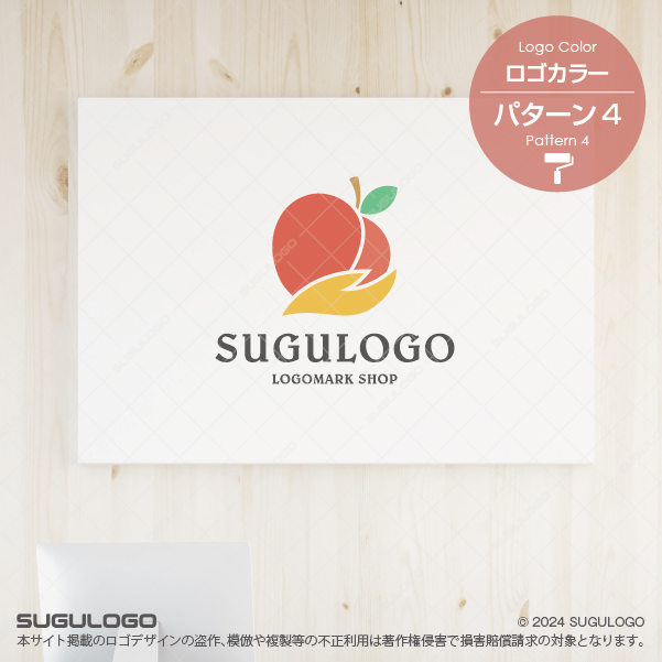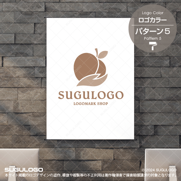 果実(フルーツ)と「葉に見立てた手」をモチーフにしたロゴデザインです。「大切に育てる」という想いを、果実を優しく包み込む手のモチーフで表現しました。果実を支えるパーツを「手」のようにも「葉」のようにも見せることで、人の手の温もりと自然の生命力の両方を表現しています。「大切に育てる」「丁寧に届ける」「健康を守る」といった真心を感じられるため、果樹園、フルーツショップ、ジャムやジュース等の加工食品ブランド、スキンケア・ヘルスケア(自然由来)関連、食品・飲料、青果店、スイーツ、カフェ、キッズ向けブランド、ナチュラル系サービス、健康食品、福祉、幼児教育、ケア、育成など大切にする心を伝えたい業種に最適です。