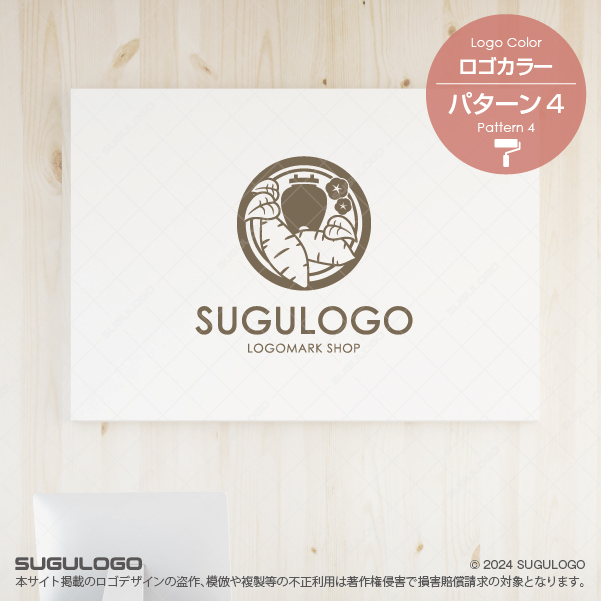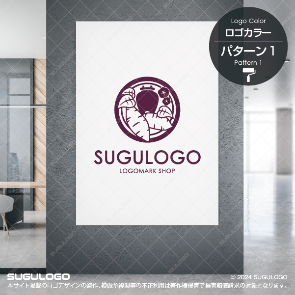 つぼ焼きイモとサツマイモ、そしてサツマイモの花をモチーフにした、和モダンで品格のあるエンブレムロゴです。中央のつぼ焼きイモは、昔ながらの製法や丁寧な焼き上げ、こだわりの味わいを象徴し、周囲のサツマイモと花のモチーフが、素材の良さや自然の恵みを表現しています。円形の構成により安定感と親しみやすさがあり、専門性と信頼感を同時に伝えられるデザインです。一般的な焼き芋ではなく、あえて壺(つぼ)を描くことで、遠赤外線で焼き上げる本格的な製法を一目で消費者に伝えます。つぼ焼きイモ専門店、焼き芋店、移動販売、和スイーツ店、農産加工ブランド、地域特産品ブランドなどに最適です。伝統と素材へのこだわりを大切にしたブランドづくりにおすすめのロゴです。