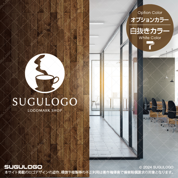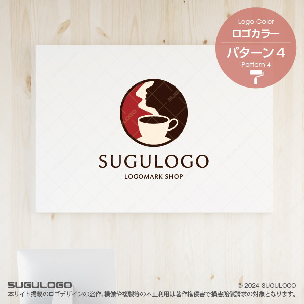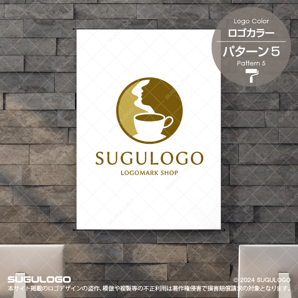 【ロゴ販売】珈琲の湯気が横顔を描くロゴデザイン