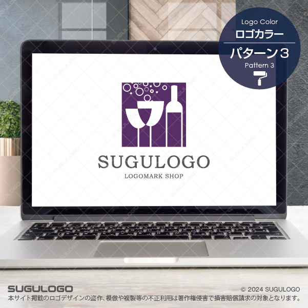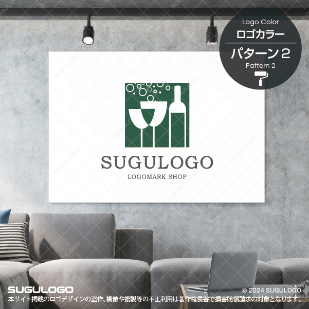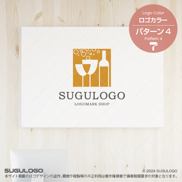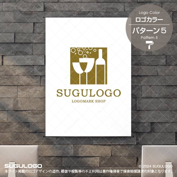 【ロゴ販売】ボトルとグラスの泡が弾けるロゴデザイン