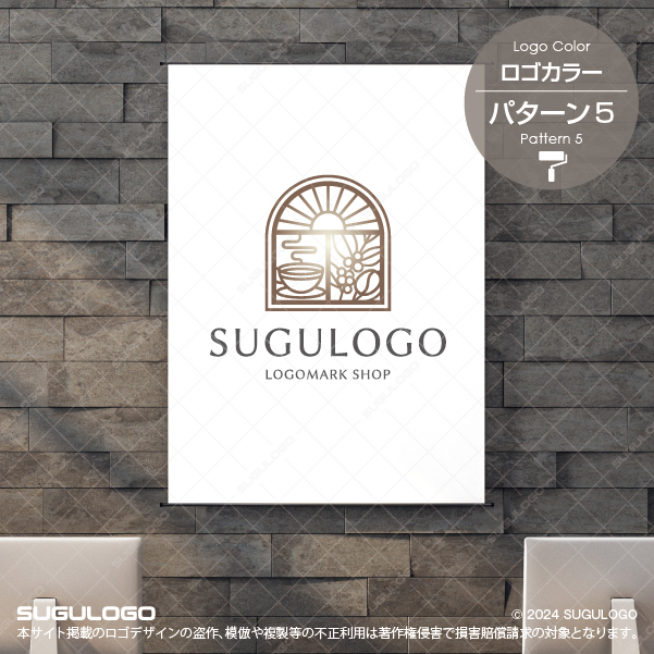 アーチ型の窓から差し込む光と、心地よい湯気が立ち上るカップ、そして生命力豊かなコーヒーの枝を繊細なラインで描いたロゴデザインです。一つの枠組みの中に物語を感じさせる要素を凝縮しており、丁寧な手仕事や安らぎの時間を象徴するシンボルマークとして深い味わいを感じさせます。細部まで均整の取れたラインは、誠実な姿勢と品質へのこだわりを表現しており、見る人に安心感と信頼を与えます。クラシックでありながら現代的な洗練さも兼ね備えた意匠は、時代に左右されない普遍的な価値を築き、組織の結束を高めながら輝かしい未来へと導く発展的なビジョンを示しています。【おすすめの業種】カフェ、自家焙煎所、ベーカリーショップ、洋菓子店、ライフスタイルショップ、インテリア雑貨店