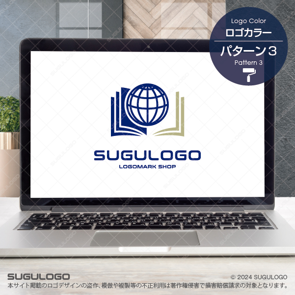 大きく開かれた本のページの上に、グリッドで表現された地球のシルエットを配置したロゴデザインです。知識の集積が世界を繋ぎ、新しい価値を創造していく様子を象徴しており、知性的で信頼感のあるシンボルマークとなっています。シンプルながらも洗練されたライン構成は、情報の透明性とプロフェッショナルな専門性を強調し、見る人に誠実な企業姿勢を強く印象付けます。右側のページが波打つような曲線を描いていることで、学びや事業が未来へ向かって躍動的に広がっていくエネルギーを表現しました。確かな知を基盤に、グローバルな視点で社会の発展に貢献しようとするこの意匠は、組織の結束を深め、時代を超えて愛される普遍的な価値を築きながら豊かな未来を切り拓くビジョンを示しています。【おすすめの業種】学習塾、大学、ITソリューション、出版社、翻訳サービス、経営コンサル