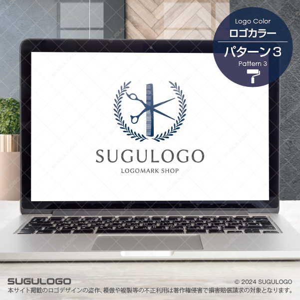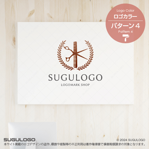 【ロゴ販売】ハサミと月桂樹の美容ロゴデザイン
