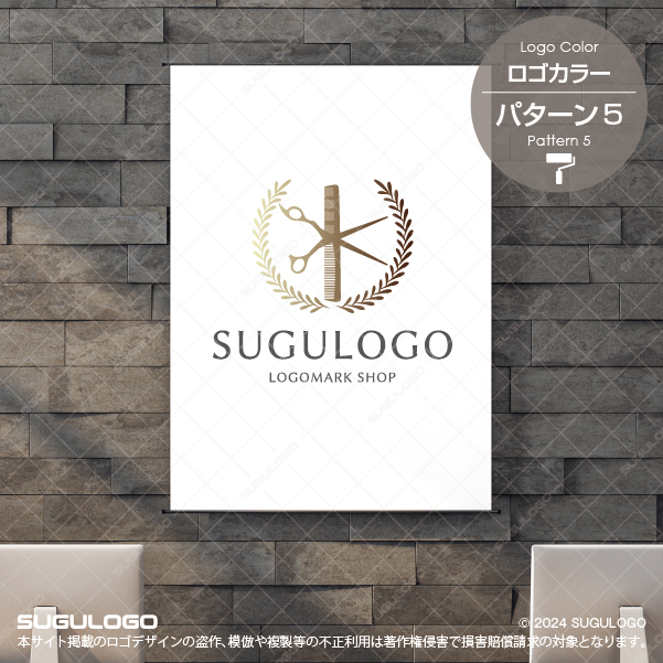 職人の道具であるハサミとコームを中央に配し、勝利と栄光を象徴する月桂樹のリースで囲んだ、気品溢れるロゴデザインです。確かな技術でお客様の美しさを引き出し、その輝きを称える姿勢を表現しており、格式高いプロフェッショナルな信頼感を感じさせるシンボルマークとなっています。落ち着いたゴールド系の色彩が、上品で洗練されたブランドイメージを構築し、流行に左右されない普遍的な価値を強調します。左右対称の美しい構成は、卓越した造形センスと誠実なサービスを象徴し、見る人に安心感と期待感を与えます。伝統的なモチーフを現代的に昇華させたこの意匠は、組織の結束を深め、お客様と共に豊かな未来を築き上げていく発展的なビジョンを明確に示しています。【おすすめの業種】美容室、理容店、バーバーショップ、ヘアメイク、エステティックサロン、専門学校