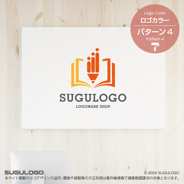 開かれた本の中央に鉛筆のシルエットを巧みに配置したロゴデザインです。知識の習得とそれを形にする創造性を象徴しており、学びを通じて新しい価値を生み出す組織にふさわしいシンボルマークとなっています。鉛筆の先端が上昇するグラフのような造形になっており、個人の成長や組織の発展を視覚的に強調しています。本をベースとした安定感のある構図は、情報の信頼性とプロフェッショナルな誠実さを同時に表現し、見る人に安心感と期待感を与えます。確かな知識を基盤に自らの手で未来を書き換え、社会に貢献しようとする姿勢は、組織の結束を深め、普遍的な価値を築きながら豊かな未来を切り拓く発展的なビジョンを示しています。【おすすめの業種】進学塾、スクール、編集プロダクション、コワーキングスペース、書道教室、IT教育