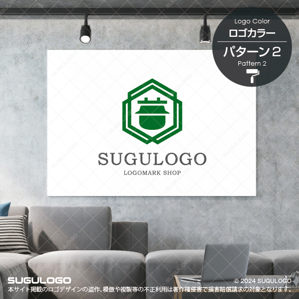 【ロゴ販売】羽釜と六角形の伝統ロゴデザイン