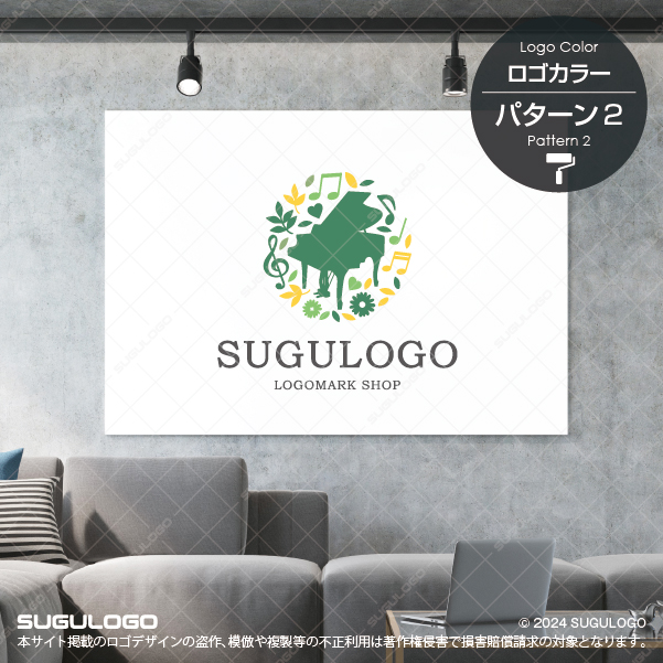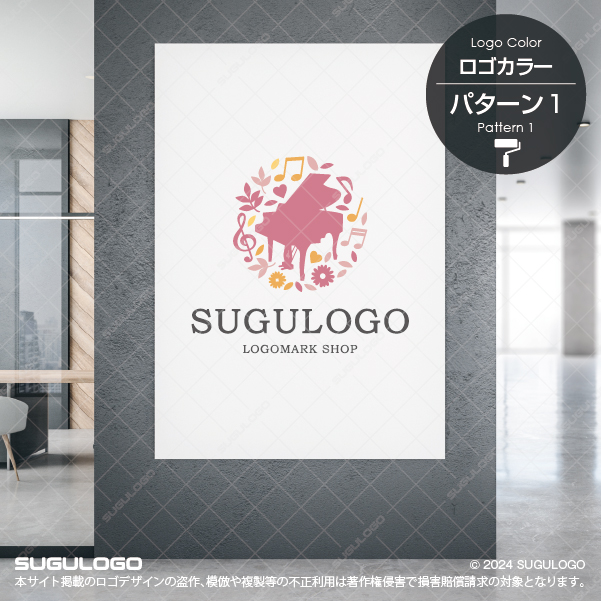 【ロゴ販売】ピアノと花音の音楽ロゴデザイン