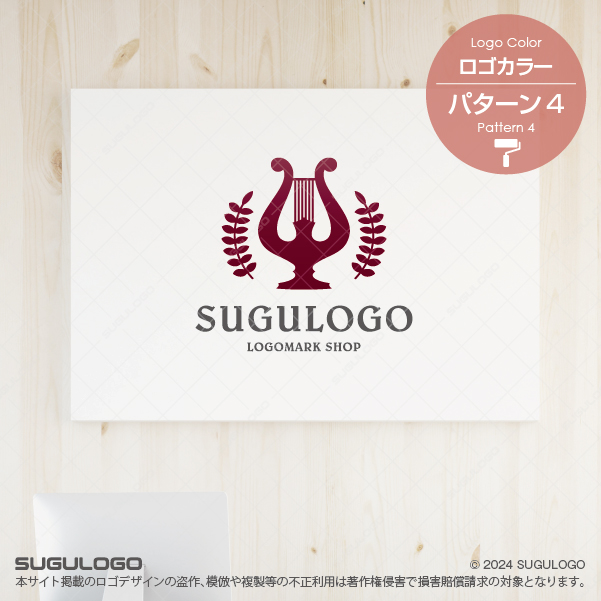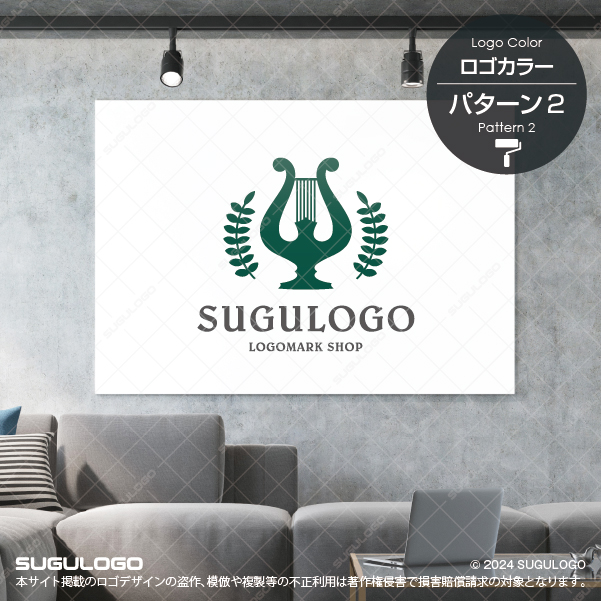 美しく洗練されたフォルムの「竪琴(ハープ)」を、勝利と栄光を象徴する「月桂樹」で包み込んだ、格調高いエンブレムロゴです。音楽が持つ「普遍的な美しさ」と、研鑽の末に勝ち取る「最高の栄誉」を象徴しており、伝統を重んじつつも文化的な価値を追求し続ける組織にふさわしいシンボルマークとなっています。左右対称に配置された月桂樹は、揺るぎない安定感と品格を強調し、中央の竪琴から伸びる繊細な弦のラインは、精緻な技術と豊かな感性を視覚的に表現しています。ゴールドを基調とした落ち着きのある配色は、長い歴史の中で培われた「信頼」と「権威」を際立たせます。芸術を通じて人々の心を豊かにし、至高の感動を提供しようとする姿勢は、組織の結束を深め、確かな価値を築きながら豊かな未来を切り拓くビジョンを示しています。【おすすめの業種】音楽大学、ピアノ・ハープ教室、芸術イベント、アンティークショップ、ホテルロビー