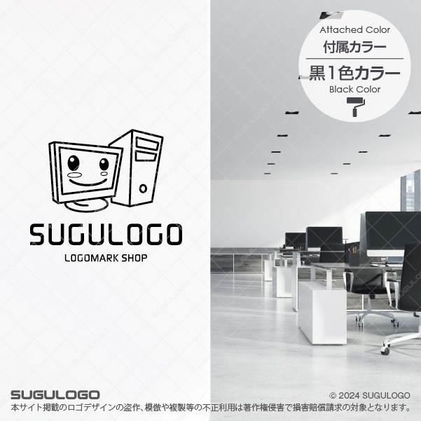 デスクトップパソコンのモニターに愛らしい「笑顔」を描き、本体(タワー)を並べて配置した、信頼感と親しみやすさが共存するロゴデザインです。テクノロジーを身近なパートナーとして捉える「フレンドリーな姿勢」と、どんな悩みもしっかりと受け止める「拠点の安心感」を象徴しており、地域に根ざしたIT教室や修理サービスを展開する組織にふさわしいシンボルマークとなっています。太めのブルーのラインで描かれたフォルムは、誠実な技術力と安定した品質を強調し、モニターの中の表情は、見る人に「ここなら安心できる」というポジティブな印象を与えます。シンプルながらも記憶に残る構成は、ブランドの透明性を際立たせます。デジタルの力で人々の暮らしを笑顔にし、力強く支えていこうとする姿勢は、組織の結束を深め、豊かな未来を切り拓くビジョンを示しています。【おすすめの業種】パソコン修理店、プログラミングスクール、ITコンサルティング、ソフトウェア開発
