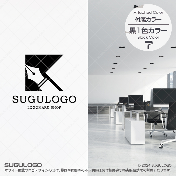 思考を形にする「万年筆のペン先」を、ソリッドな幾何学的背景と融合させた、知性と気品が共鳴するロゴデザインです。確かな言葉を紡ぎ出す「創造性」と、誠実な合意を交わす「契約の信頼性」を象徴しており、深い専門知識で社会を導くプロフェッショナルや、良質なコンテンツを世に送り出すビジネスにふさわしいシンボルマークとなっています。斜めに鋭く配置されたペン先のラインは、組織の「先進的な視点」と「未来を切り拓く力」を強調。クラシックなモチーフを現代的に昇華させた構成は、あらゆるメディアで高い視認性を保ち、洗練されたブランドイメージを視覚的に確立します。一字一行に想いを込め、スマートに新たな文化を構築しようとする姿勢は、組織の結束を深め、揺るぎないブランド価値を築き上げるビジョンを示しています。【おすすめの業種】弁護士・行政書士、出版・編集、ライティング、デザイン事務所