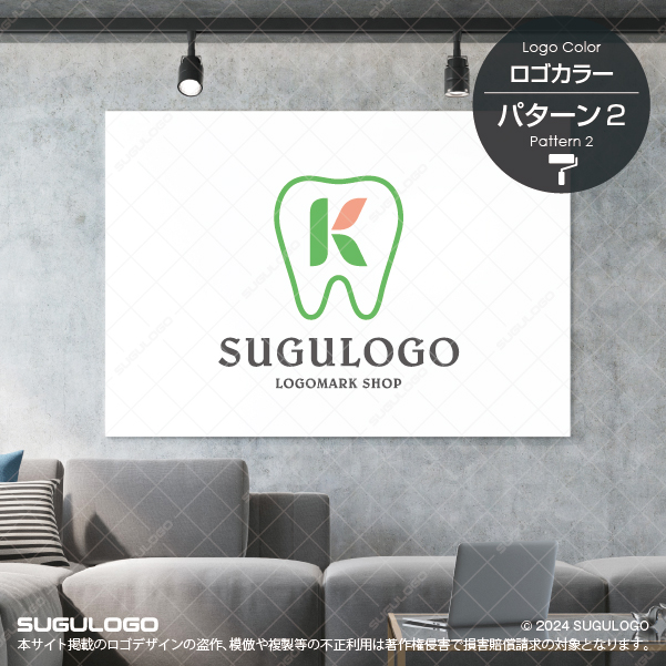 健やかな歯のシルエットを外郭に据え、その中心にアルファベットの「K」を鮮やかに描き出した、専門性と親しみやすさが融合したロゴデザインです。Kを構成するパーツの一部に温かみのあるオレンジ色を差すことで、歯科特有の冷たさを払拭し、通院する患者さまの不安を和らげる「優しさ」を表現しています。このシンボルマークは、クリーンなグリーンのラインによって、見る者に医療従事者としての誠実な知性と、徹底した衛生管理への信頼感を与えます。一目で歯科診療を連想させる直感的な造形は、地域に愛されるホームドクターとしてのアイデンティティを確立します。時代に左右されない普遍的な価値を築き上げ、組織の強固な結束とともに、輝く笑顔と未来を支える発展的なビジョンを体現する意匠です。【おすすめの業種】歯科医院、矯正歯科、審美歯科、小児歯科、デンタルクリニック