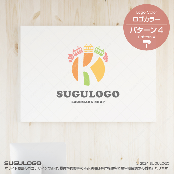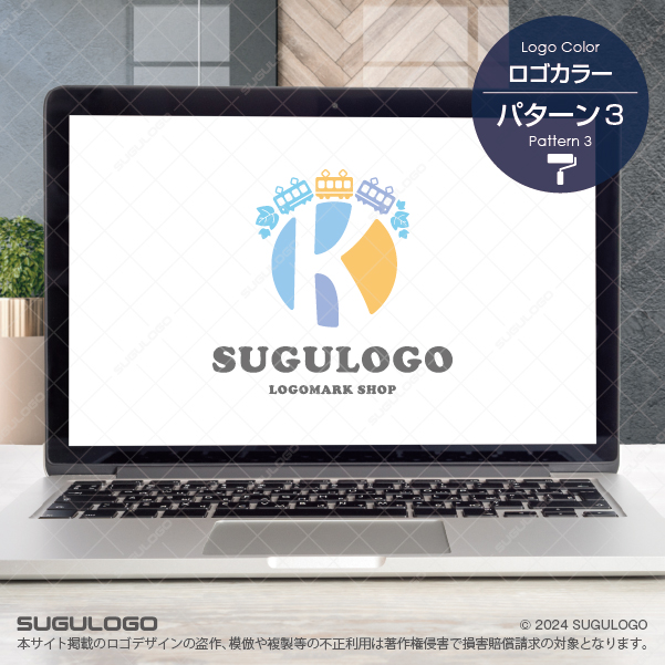 ロゴデザインです。アルファベットの「K」を背景の柔らかな色彩で描き出し、その上を色とりどりの電車が軽やかに走る、物語性を感じさせる意匠です。円を描くように配置された乗り物と瑞々しい葉のモチーフは、地域社会の繋がりや、子供たちの健やかな成長を見守る温かな眼差しを表現しています。このシンボルマークは、パステルカラーの調和によって、見る者に安心感と日常の小さなときめきを同時に抱かせます。一目で親しみやすさを伝える造形は、世代を超えて愛され、街に活気をもたらす組織のアイデンティティを体現しています。時代に左右されない普遍的な価値を築き上げ、組織の強固な結束とともに、笑顔があふれる豊かな未来を支え続ける発展的なビジョンを体現する意匠です。【おすすめの業種】保育園、教育、観光業、地域活性化、福祉