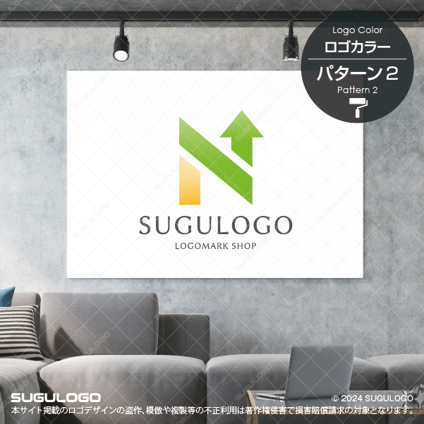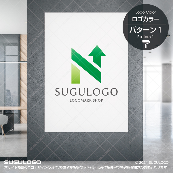 ロゴデザインです。知的なアルファベットの「N」のフォルムに、天を突くような鋭い矢印をシームレスに融合させた、上昇と革新が響き合う意匠です。右肩上がりに伸びゆくラインは、現状に満足することなく、常にさらなる高みを目指して挑戦し続ける組織の圧倒的な推進力と、未来への明確な指針を表現しています。このシンボルマークは、生命力溢れるグリーンのグラデーションによって、見る者に爽やかな信頼感と、持続的な発展への確信を与えます。論理的な構成の中に躍動感を秘めた佇まいは、確かな戦略に基づきながら社会に新たな価値をもたらし、次なるステージを切り拓く組織のアイデンティティを体現しています。時代に左右されない普遍的な価値を築き上げ、組織の強固な結束とともに、輝かしい未来へ躍進し続ける姿を体現する意匠です。【おすすめの業種】IT・テック、コンサル、人材、金融