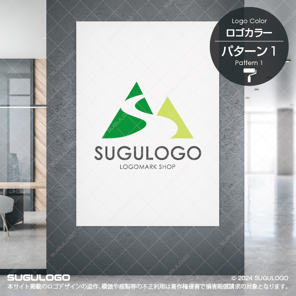 青々と茂る山並みと、その中心を抜けて高みへと続く一本の道を幾何学的に描いた、希望あふれるロゴデザインです。雪を頂いた鋭い山頂は「高い目標」や「揺るぎない志」を、手前から奥へと流れるS字の道は、成功へと至る「確かなプロセス」と「継続的な成長」を象徴しています。無駄を削ぎ落としたスタイリッシュな造形は、自然への畏敬の念と、困難を乗り越えて進む強靭な精神性を同時に表現しており、見る者に圧倒的な信頼感と清々しい印象を与えます。濃淡の異なるグリーンの配色によって奥行きを生み出した構成は、多角的な視点から課題を解決し、豊かな未来を切り拓くという誠実なビジョンを抽象的に描いたものです。この雄大かつ知的な佇まいが、独自のブランド価値を際立たせ、さらなる高みへと飛躍していく発展的な姿を体現しています。【おすすめの業種】不動産・住宅建設、経営コンサルティング、アウトドア・スポーツ、観光業、農業・林業、物流・運輸