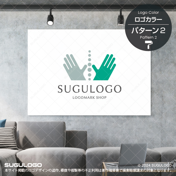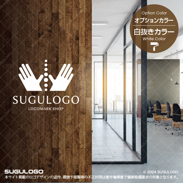 優しく差し出された左右の手が、中心にあるドットのラインを包み込むように配置された、ホスピタリティ溢れるロゴデザインです。中央の垂直なラインは、身体の要である「背骨」や、揺るぎない「自分らしさ(芯)」を、それらをサポートする両手は、確かな「技術」と「慈しみ」を象徴しています。トーンの異なるグリーンの配色は、生命の活力と深いリラクゼーションを同時に表現しており、見る者に健やかな安心感とプロフェッショナルな信頼感を与えます。幾何学的でありながら有機的な温かみを感じさせる造形は、手技を通じて心身のバランスを整え、活き活きとした毎日を支えるという真摯な姿勢を抽象的に描いたものです。この調和と献身が共存する佇まいが、独自のブランド価値を際立たせ、健やかな未来を共に創り出す発展的なビジョンを体現しています。【おすすめの業種】整体院・接骨院・鍼灸院、マッサージ・エステサロン、リハビリテーション施設、介護支援サービス、ヨガ・ウェルネススタジオ、健康食品・ライフスタイル
