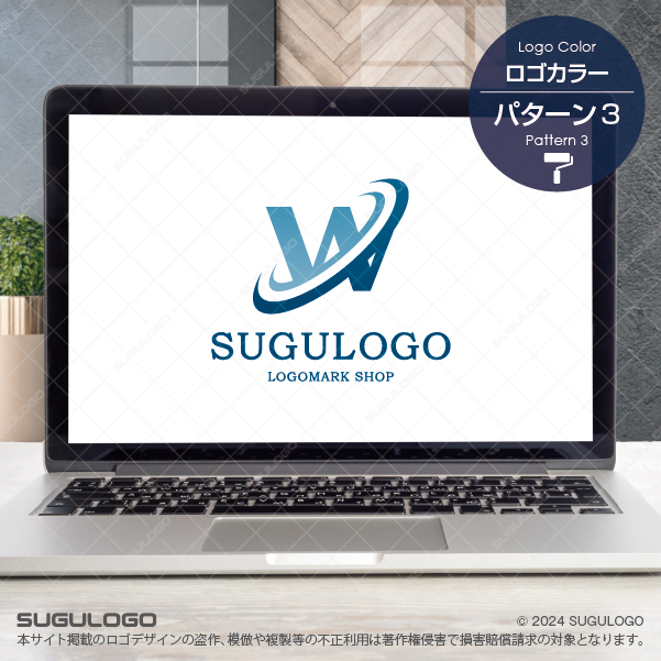 【ロゴ販売】Wを周回するラインのロゴデザイン