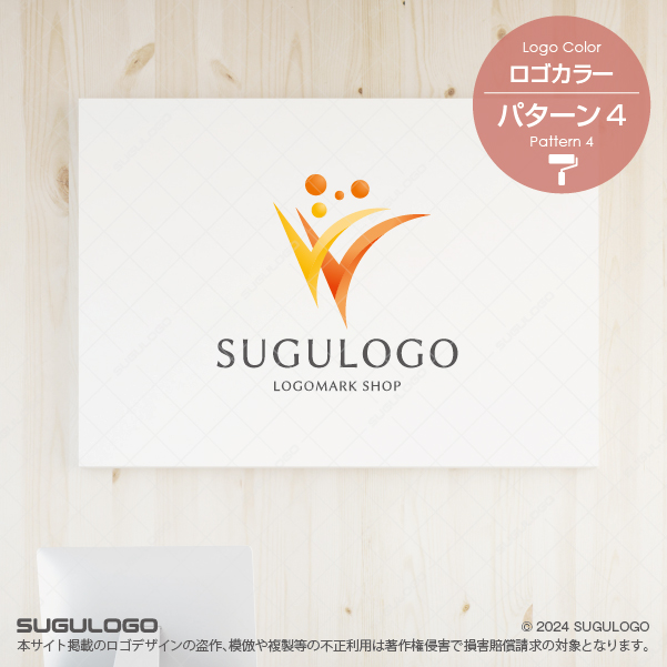 燃え上がるようなレッドとオレンジのグラデーションが目を引く、エネルギーに満ち溢れたモダンロゴデザインです。鋭く上昇する二つのV字ラインは、勝利(Victory)や飛躍的な成長を、その上部で軽やかに舞うドットは、歓喜する「人々」の姿や、次々に生まれる「新しいアイデア」を象徴しています。暖色系の色彩設計は、内に秘めた情熱と、周囲を明るく照らすポジティブな活力を同時に表現しており、見る者に強いインパクトと高揚感を与えます。各要素が中心から外側へと広がるダイナミックな構成は、個々の力が共鳴し合い、大きなムーブメントを起こしていく「チームワーク」の美しさを抽象的に描いたものです。この躍動感と華やかさが共存する佇まいが、独自のブランド価値を際立たせ、挑戦し続けるすべての人を鼓舞するような発展的なビジョンを体現しています。【おすすめの業種】スポーツチーム・フィットネスジム、広告・イベント企画、経営・起業コンサルティング、教育・スクール事業、クリエイティブ制作、飲食・カフェ