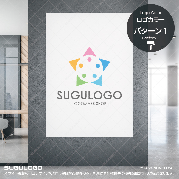 【ロゴ販売】星と5人の人が集うロゴデザイン