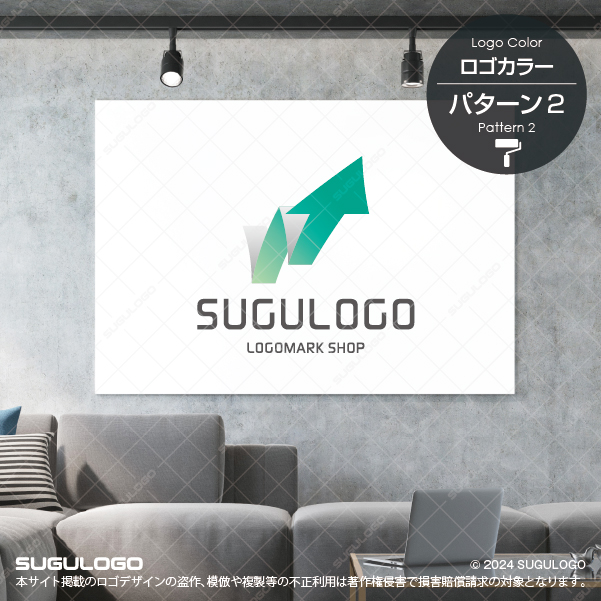 幾何学的なラインを組み合わせ、力強く右肩上がりに伸びる矢印を描き出したロゴデザインです。止まることのない成長と、目標に向かって迷いなく突き進むスピード感を表現しています。重なり合うパーツが連続して上昇していくフォルムは、確かなステップアップと持続的な発展を象徴したシンボルマークです。視認性に優れたシャープな造形は、プロフェッショナルな知性と、未来を切り拓くポジティブな意志を体現しています。時代に左右されない普遍的な価値を持ち、常に最高の結果を追求し続ける企業の姿勢を映し出します。このシンボルが組織の結束を固め、右肩上がりの業績向上と共に、輝かしい明日へと飛躍し続ける発展的なビジョンを力強く後押しします。【おすすめの業種】経営コンサル、投資信託、物流、マーケティング、建築、ベンチャー企業