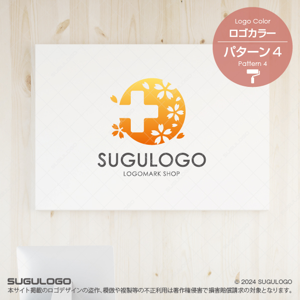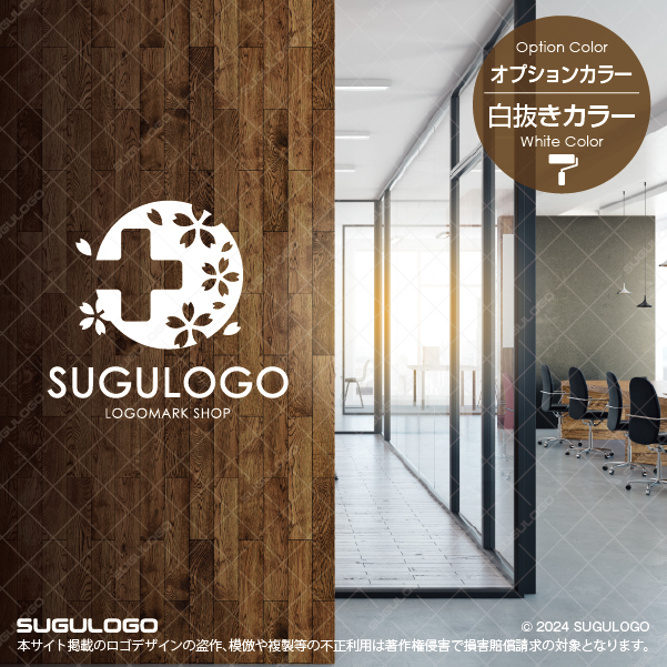 円形の中に十字のシルエットと美しく舞う桜の花びらを組み合わせたこのシンボルマークは、生命の輝きと和やかな癒やしの時間を象徴しています。日本人に親しみ深い桜のモチーフは、見る人に安心感と新しい一歩を踏み出す希望を与え、ブランドの誠実な姿勢を真っ直ぐに伝えます。視認性に優れた清潔感のあるロゴデザインは、医療や介護といった信頼が求められる分野において、優しさと専門性を兼ね備えた顔として最適です。シンプルながらも季節の情緒を感じさせる構成により、看板や名刺などあらゆる媒体で一貫した温かなメッセージを届けることが可能です。心身の健康を支え、地域に根ざした安らぎを提供する志を視覚化したロゴデザインです。独自の感性で、訪れる人の心を満たすブランド価値を構築します。【おすすめの業種】医療・クリニック。歯科医院。介護・福祉。薬局。和菓子・和食。美容。