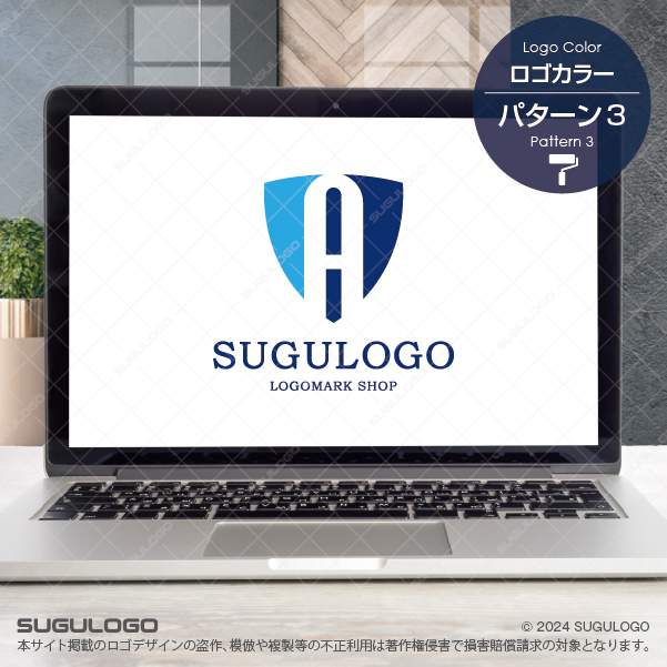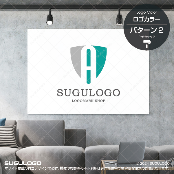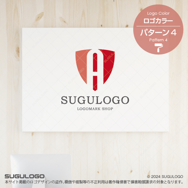 【ロゴ販売】Aを盾に配したエンブレムロゴ