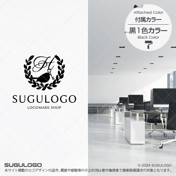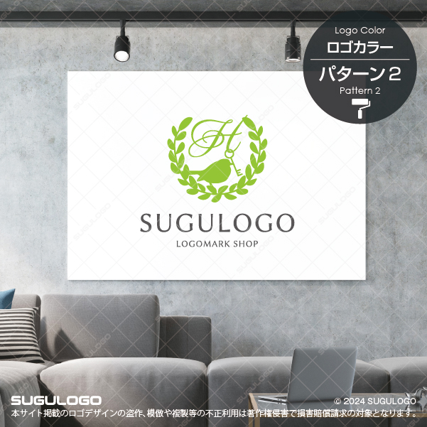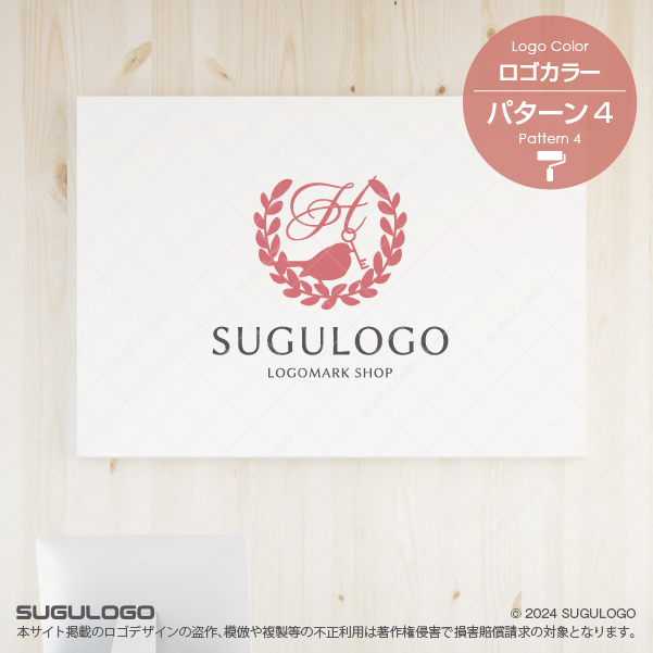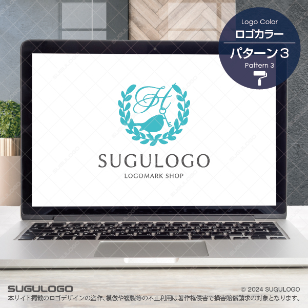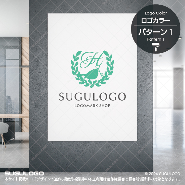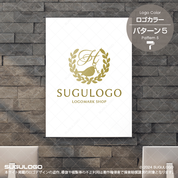 アルファベットのHを中心に、幸運を運ぶ鳥と未来を開く鍵、そして栄光を象徴する月桂樹のリースを融合させた、物語性を感じるロゴデザインです。中央に配された優雅な筆記体のHは、ホスピタリティ(Hospitality)と誠実な姿勢を象徴しています。シンボルマークを彩る鳥と鍵のモチーフは、新しい門出への祝福や、確かな信頼によって心を開く様子を表現しており、見る者に温かさと安心感を与えます。周囲を囲む月桂樹のラインは、永続的な発展と調和を抽象的に描いたものです。クラシックなエレガンスと可憐な造形が共存するシルエットが、ブランドの独自性を際立たせ、関わるすべての人に幸福を届けていく確かなビジョンを体現しています。【おすすめの業種】結婚式場、プライベートサロン、セレクトショップ、保育施設、士業、住宅販売