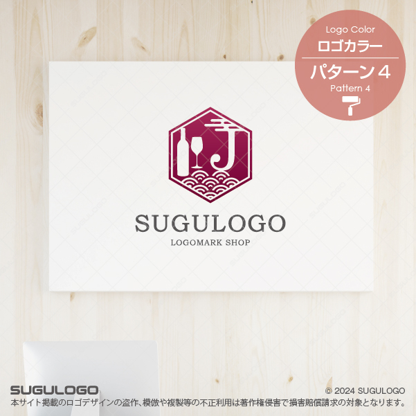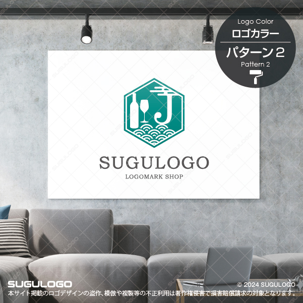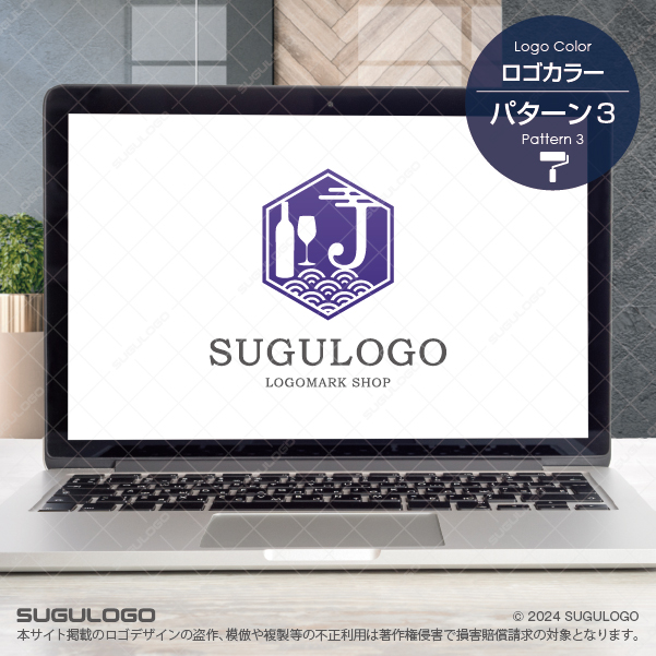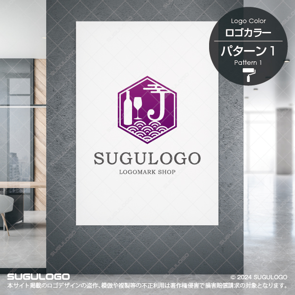 アルファベットの「J」をベースに、洗練された「ワイン」の文化と、日本の伝統的な「波模様」を融合させた、和洋折衷の美しさが際立つロゴデザインです。六角形の亀甲枠の中に配されたJのシルエットは、日本(Japan)の誇りと、芳醇な喜び(Joy)を象徴しています。シンボルマークの左側に並ぶボトルとグラスは上質な提供サービスを意味し、下部に描かれた青海波のような模様は、絶え間なく続く幸福と穏やかな時の流れを表現しています。直線的なフレームと流麗な筆記体のコントラストは、伝統を守りつつ新しい感性を取り入れる柔軟な姿勢を抽象的に描いたものです。粋で落ち着いた情緒を感じさせる造形が、唯一無二のブランドイメージを確立し、多種多様な文化が交差する豊かな未来を体現しています。【おすすめの業種】創作ダイニング、バル、ワイナリー、高級旅館、イベント企画、ライフスタイルショップ