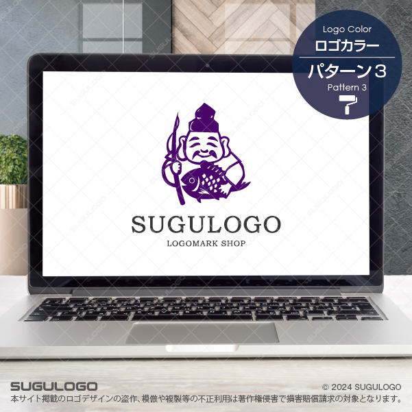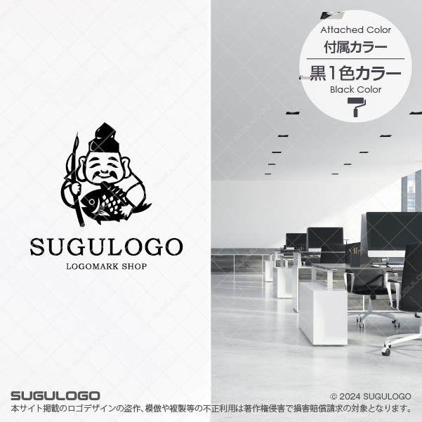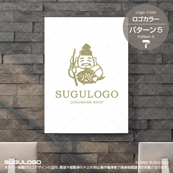 大きな鯛を抱え満面の笑みを浮かべる恵比寿様をモチーフにしたシンボルマークです。このデザインは古来より伝わる商売繁盛や家内安全、そして大漁満足といった多幸感を象徴しており、見る人に圧倒的な安心感と縁起の良さを与えます。伝統的な和の精神を感じさせるロゴデザインは、豊かな創造力や新しいひらめきを大切にしながら、自由なアイデアで顧客に喜びを届ける店舗や企業に最適です。恵比寿様の穏やかな表情は誠実な商いを、力強く抱えられた鯛は確かな成果と実りを表現しています。視認性に優れた伝統的な造形は、あらゆる媒体でブランドの信頼性と親しみやすさを際立たせ、末永い繁栄の象徴としてビジネスを支え続けます。【おすすめの業種】飲食店。水産業。小売業。和菓子店。伝統工芸。建築。地域活性化事業。士業。