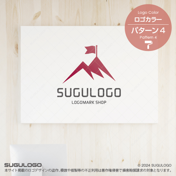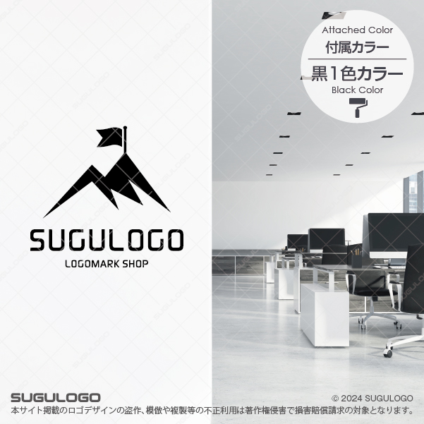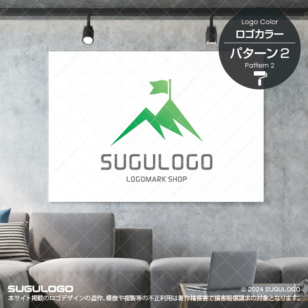 険しくそびえ立つ山の頂に勝利の旗が掲げられた瞬間を表現したシンボルマークです。このデザインは困難を乗り越えて目標を達成する不屈の精神と、組織が目指すべき明確なビジョンを象徴しており、見る人に力強い信頼感と勇気を与えます。シャープなラインで構成されたロゴデザインは、豊かな創造力や新しいひらめきを武器に、革新的なアイデアで業界のトップランナーを目指す企業に最適です。旗は成功とリーダーシップを、山脈は盤石な基盤と持続的な成長を表現しています。視認性に優れた都会的な造形は、あらゆる媒体でブランドの志の高さを際立たせ、未来を切り拓く象徴として長く愛され続けます。【おすすめの業種】不動産業。コンサルティング。IT企業。建設。アウトドア。教育。スポーツ。士業。