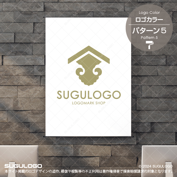家の屋根と伝統的な波文様を組み合わせた、重厚感溢れるロゴデザインです。屋根のモチーフは安心できる住まいや拠点を象徴し、その下に広がる装飾的なラインは、絶え間なく続く繁栄や伝統技術の継承を表現しています。このシンボルマークは、地に足のついた誠実な姿勢と、職人のこだわりを大切にする企業姿勢を視覚的に伝えるのに最適です。シンプルながらも格式高い印象を与えるため、顧客に対してプロフェッショナルな安心感と永続的な信頼を提供することができます。和の美意識を感じさせつつ現代的な幾何学的構成も取り入れており、どのような媒体でも美しく調和するロゴデザインがブランドの格を一段と高めてくれるでしょう。【おすすめの業種】建設業。工務店。不動産業。リフォーム業。設計事務所。伝統工芸。和装店。宿泊施設。