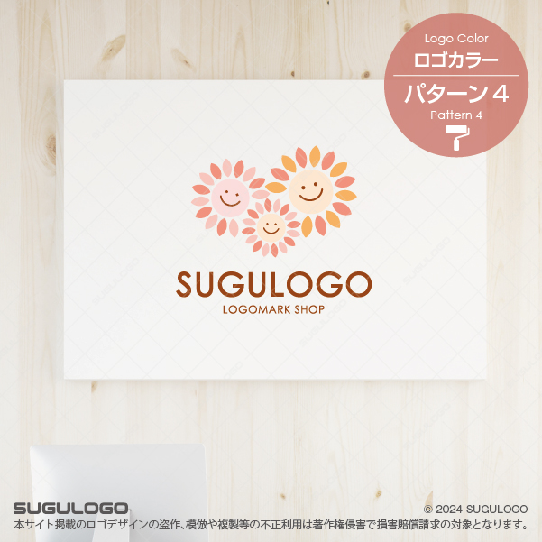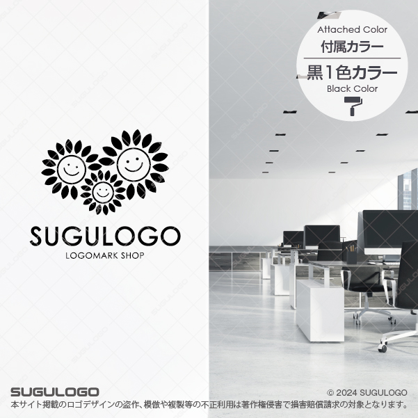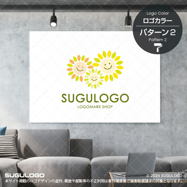 三つのひまわりが寄り添い、楽しげな表情を浮かべるこのシンボルマークは、家族や地域の絆、そして明るい未来を象徴しています。太陽に向かって咲くひまわりのように、常に前向きでポジティブなエネルギーを放ち、見る人すべてを笑顔にするロゴデザインです。シンプルで親しみやすい造形は、お子様からご年配の方まで幅広い層に安心感と喜びを与え、ブランドの持つ優しさをストレートに伝えます。それぞれの花が異なる大きさで描かれていることで、多様性や共に支え合う温かい関係性を表現しました。活気あるコミュニティづくりや、日々の暮らしに幸せを届けるビジネスの顔として、周囲を明るく照らし続ける意匠です。【おすすめの業種】保育園。幼稚園。小児科。介護施設。地域コミュニティ。レジャー施設。