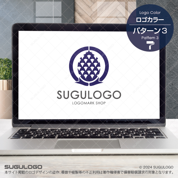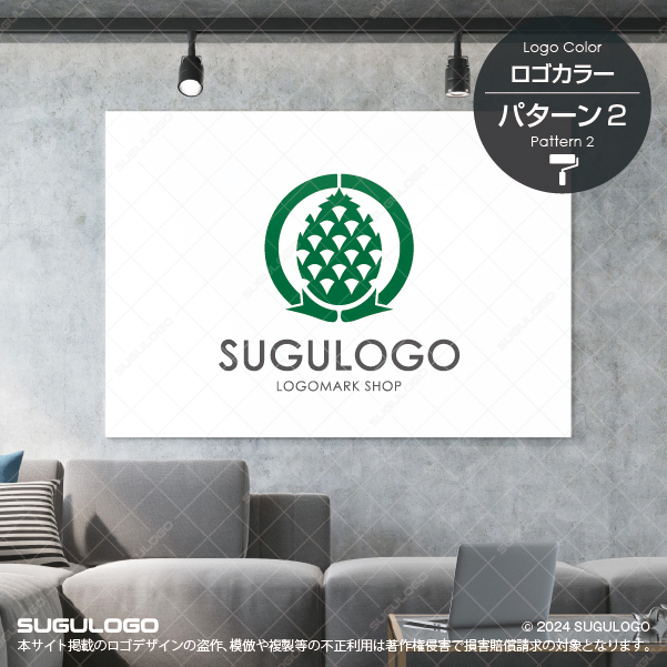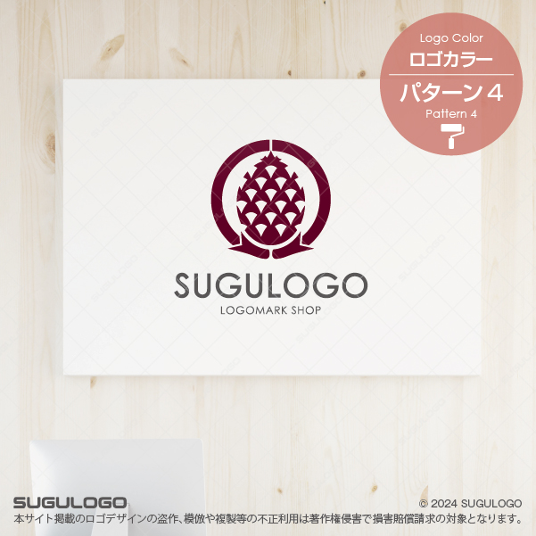 円の中に松傘を幾何学的なパターンで描き出したこのシンボルマークは、不老長寿や繁栄を象徴する縁起の良いデザインです。規則正しく並んだ鱗片の重なりは、積み重ねてきた歴史や技術、そして組織の強固な結束力を表現しています。円形のフレームで全体を包み込むことにより、調和と安定感を与え、顧客に対して揺るぎない信頼感を抱かせるロゴデザインに仕上げました。洗練されたシルエットは、和の伝統を重んじながらも現代的な感性を持ち合わせるブランドにふさわしい格調高さを持っています。シンプルながらも力強い存在感は、看板や印影、パッケージなど、どのような場面でもブランドの威厳を静かに、かつ確実に伝えることでしょう。【おすすめの業種】工務店。和菓子店。日本料理店。寺院。士業事務所。伝統工芸。