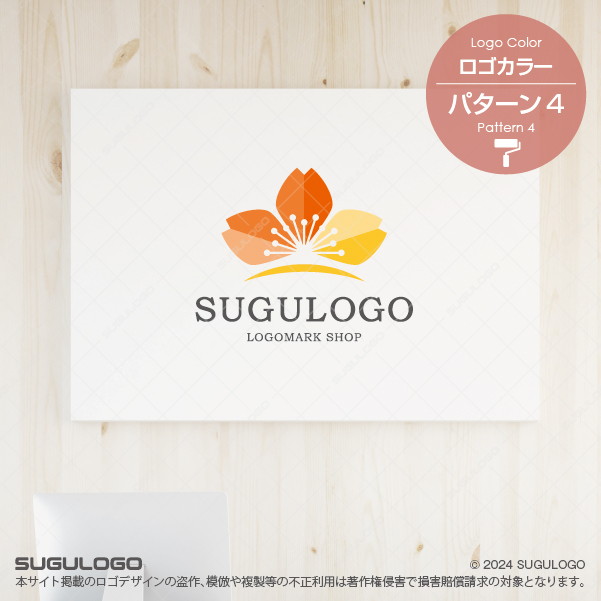 中央から三方向に三枚の花びらが美しく広がる桜をモチーフにしたロゴデザインです。和の伝統と洗練された現代美を融合させたシンボルマークは、見る人に気品と信頼感を与え、ブランドのアイデンティティを格上げします。幾何学的に構成された花びらと雄しべの造形は、企業の緻密なサービスや創造性を表現しており、名刺や看板といった様々な媒体でも高い視認性を誇ります。独自の高級感を備えたこのロゴデザインは、競合との差別化を明確にし、事業の品格を視覚的にサポートする大切な資産となるでしょう。【おすすめの業種】和菓子店。日本料理。エステサロン。美容院。ブライダル。旅館。伝統工芸。ジュエリーショップ。化粧品販売。クリニック。【おすすめの職種】オーナー。セラピスト。
