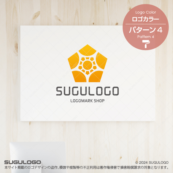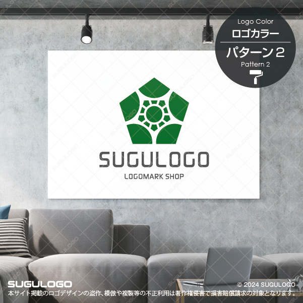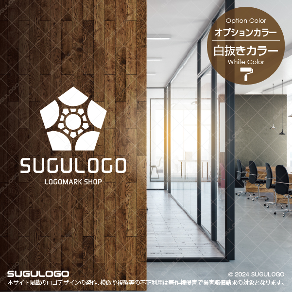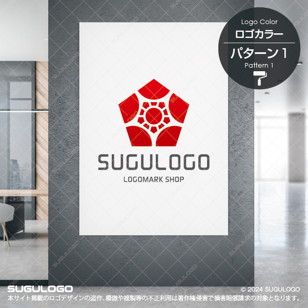 五角形の外枠の中に太陽のような中心点と放射状に広がるラインを精密に配置したシンボルマークです。中心から外側へと力強く広がる構成は、企業のさらなる成長性や情報の拡散力、そして強固な組織の結束力を象徴しています。シンプルながらも細部まで計算された対称性が非常に美しく、どのような場面においても高い視認性を誇るロゴデザインです。五つの角がバランスよく配置されたシルエットは、安定感と信頼を築くビジネスの姿勢を体現しており、見る人に誠実な印象を与えます。内側に描かれた円形のエレメントは、円滑なコミュニケーションや調和を意味し、多角的な事業展開やチームワークを重視する組織にふさわしい造形です。【おすすめの業種】情報通信業、建設業、不動産業、コンサルティング業、教育・学習塾、スポーツ施設