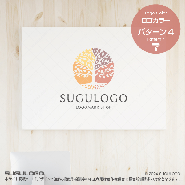 円形のシルエットの中に、大地へ深く根を張り、空へと力強く枝葉を広げる大樹を表現したシンボルマークです。四つのエリアで異なる色彩を纏った葉は、四季の美しさや、多角的に広がる事業の多様性を象徴しています。中央の太い幹から広がる精密なラインは、安定した土台の上に成り立つ確かな実績と、絶え間ない生命の循環を同時に表現しています。見る人に安心感と誠実な印象を与えるとともに、組織の柔軟な歩みと未来への希望を明確に打ち出すロゴデザインです。シンプルながらも細部まで丁寧に構成された造形は、どのような場面においても高い視認性と上質な风格を保ちます。自然の息吹を感じさせる普遍的な美しさが、確固たるブランド価値を築き上げ、末永くビジネスの繁栄に寄り添うパートナーとなるでしょう。【おすすめの業種】不動産業、建設業、医療・クリニック、教育・学習塾、経営コンサルティング、農林水産業