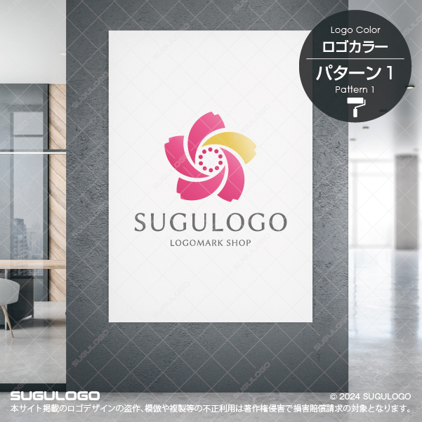 螺旋を描く花びらが華やかに舞う桜のロゴデザインです。中心から外側へ向かって、風に舞うような躍動感とともに広がる5枚の花びらをモチーフにしたシンボルマークです。日本の美の象徴である桜を現代的なバランスで構築したこの造形は、組織の持つ柔軟な創造性や、絶え間ない発展、そして華やかな門出を象徴しています。重なり合う花びらの曲線が描く優雅なリズムは、見る人に晴れやかな安心感とプロフェッショナルな印象を与えるとともに、ブランドの個性を上品に打ち出すロゴデザインです。シンプルながらも洗練されたフォルムは、どのような場面においても高い視認性と上質な風格を保ちます。時代に左右されない普遍的な美しさが、確固たる価値を築き上げ、末永く歩みに寄り添うパートナーとなるでしょう。【おすすめの業種】エステ・美容、医療・クリニック、ブライダル、和菓子・飲食業、教育・学習塾、デザイン事務所