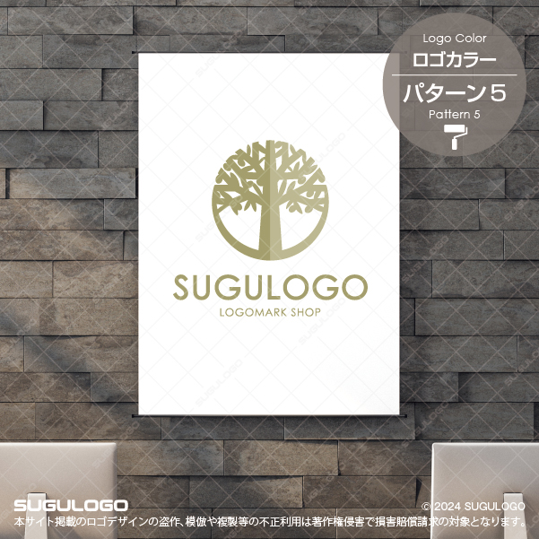 緻密な枝葉が円を描き安定をもたらすロゴデザインです。円形のフレームの中に、中心から左右へと規則正しく枝を広げる大樹をモチーフにしたシンボルマークです。大地を貫くような太い幹と、細部まで行き届いた枝葉の構成は、組織の持つ確固たる基盤と多角的な発展を象徴しています。垂直と曲線が調和した整然たるシルエットは、見る人に深い安心感とプロフェッショナルな印象を与えるとともに、ブランドの個性を重厚に打ち出すロゴデザインです。シンプルながらも密度の高い構成美は、どのような場面においても高い視認性と上質な風格を保ちます。時代に左右されない普遍的な美しさが、確固たる価値を築き上げ、末永く歩みに寄り添うパートナーとなるでしょう。【おすすめの業種】建設業、不動産、コンサルティング、医療・クリニック、教育・学習塾、金融・保険