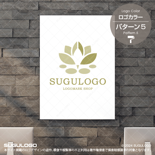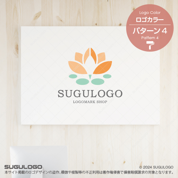 水面に浮かび凛と咲く蓮の花のロゴデザインです。穏やかな水面を象徴する楕円形の葉の上に、清らかに花開く蓮をモチーフにしたシンボルマークです。左右対称に構成されたシルエットは、組織の持つ揺るぎない安定感や、調和の取れた誠実な姿勢を象徴しています。直線と曲線をバランスよく組み合わせたモダンなフォルムは、見る人に深い安らぎとプロフェッショナルな印象を与えるとともに、ブランドの個性を格式高く打ち出すロゴデザインです。シンプルながらも洗練された構成は、どのような場面においても高い視認性と上質な風格を保ちます。時代に左右されない普遍的な美しさが、確固たる価値を築き上げ、末永く歩みに寄り添うパートナーとなるでしょう。【おすすめの業種】医療・クリニック、エステ・美容、ヨガ・フィットネス、寺院・伝統文化、カウンセリング、和菓子・飲食業